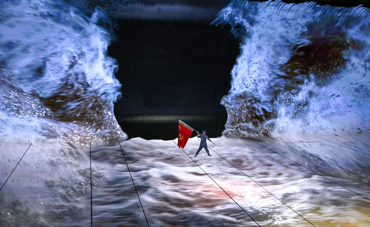 演員在貴州長征文化數(shù)字藝術(shù)館進(jìn)行《紅飄帶·偉大遠(yuǎn)征》表演(2025年11月15日攝)。新華社記者 楊文斌 攝