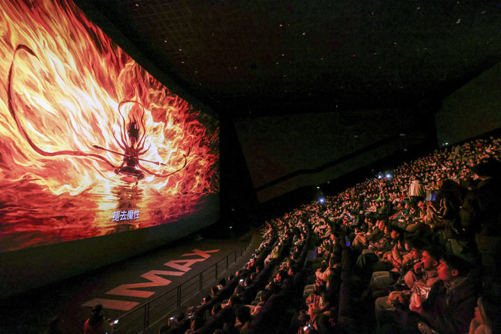 2025年2月25日,觀眾在貴州省貴陽市越界影城觀看電影《哪吒之魔童鬧?!?。該片打破了中國影史票房紀錄。新華社記者 歐東衢 攝