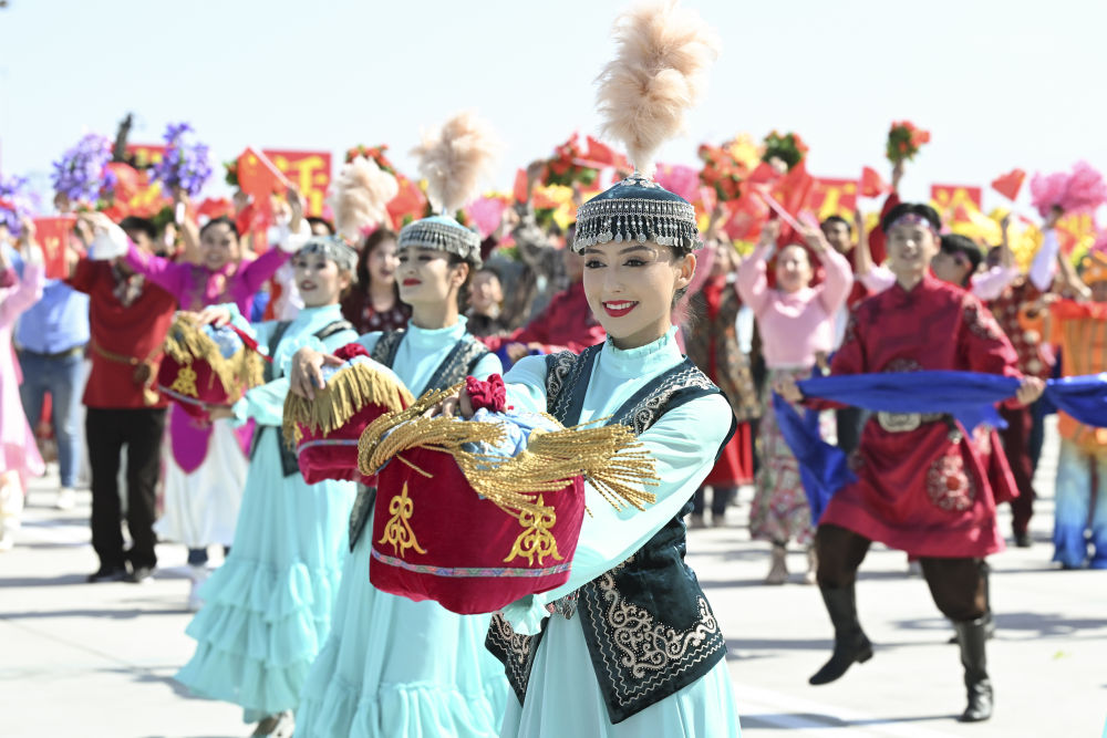 新華社記者的鏡頭里,各族兒女簇?fù)碓谝黄穑瑲g笑在一起;明艷的服飾、熱烈的歌舞,無不展現(xiàn)出團(tuán)結(jié)與奮進(jìn)的力量。