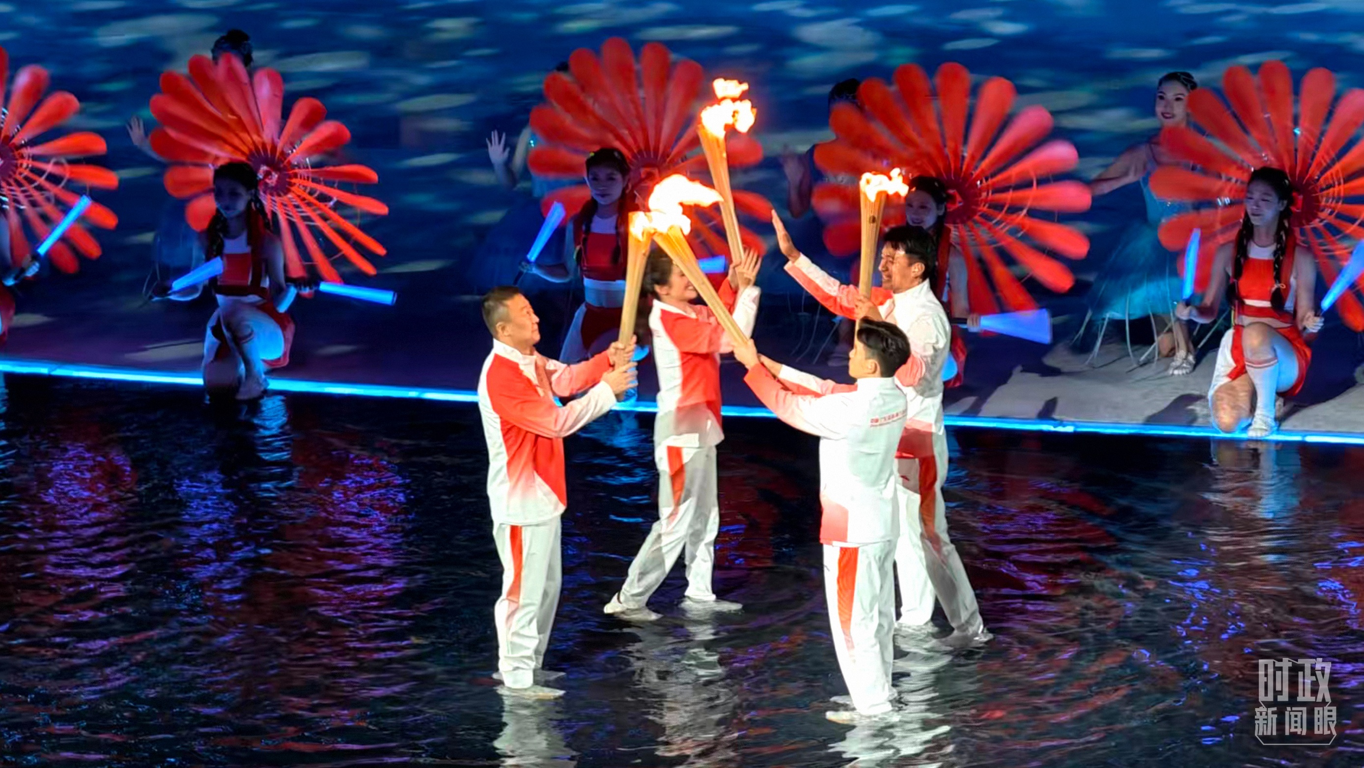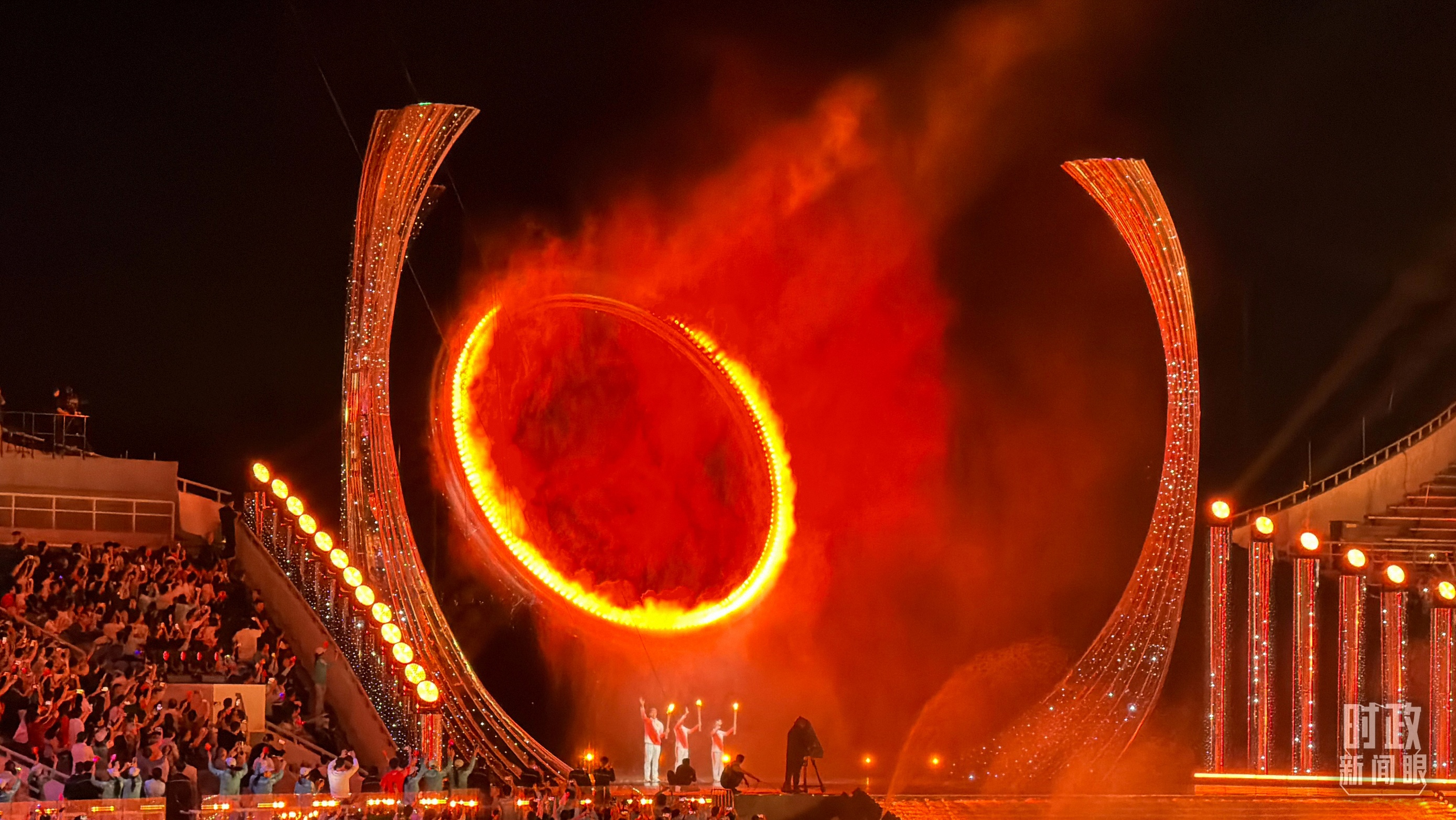 第十五屆全運(yùn)會(huì)主火炬點(diǎn)燃環(huán)節(jié)。(總臺(tái)央視記者范一鳴、蔣碩拍攝)