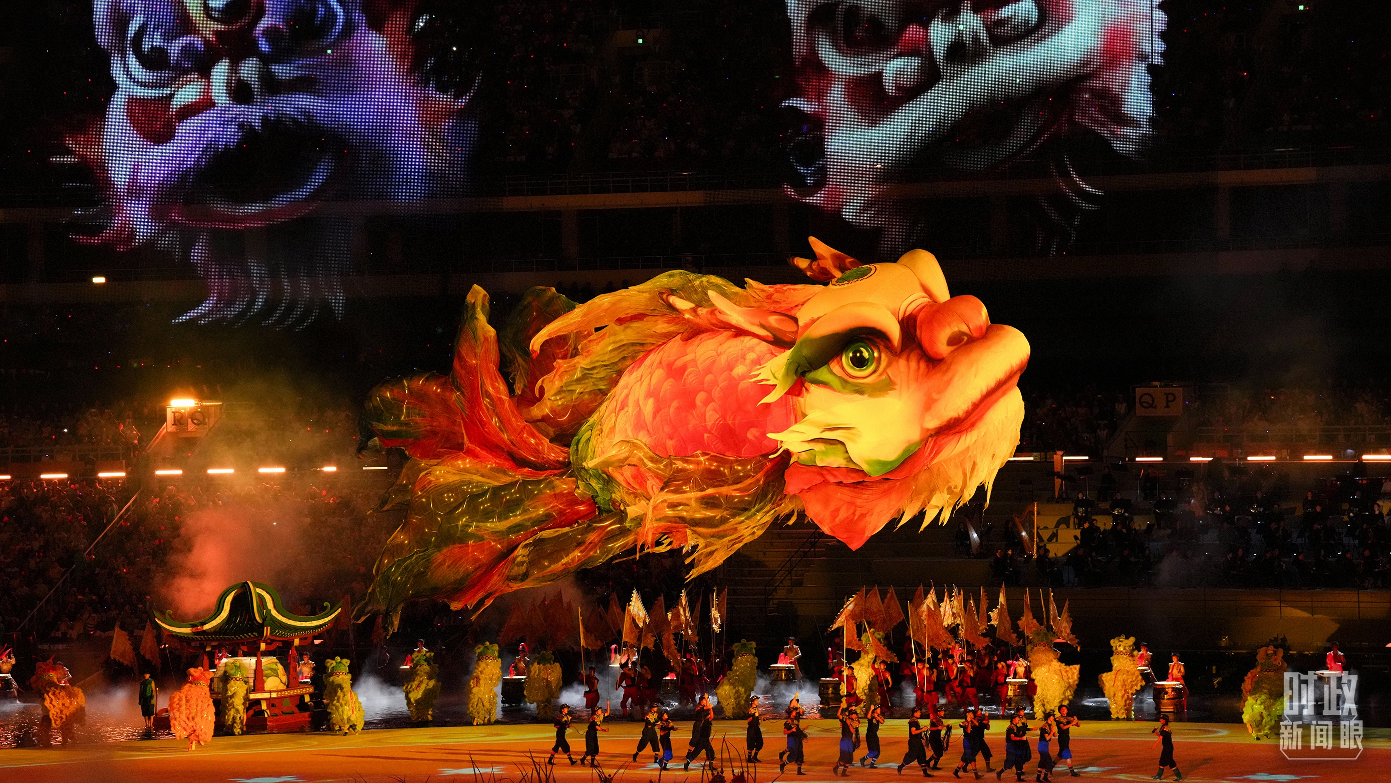 粵港澳大灣區(qū)作為全國科技重鎮(zhèn),傳統(tǒng)嶺南文化與前沿科技深度融合成為本屆全運(yùn)會(huì)開幕式的一大亮點(diǎn)。醒獅表演與人工智能技術(shù)相互交融,英歌鑼鼓搭配全息投影,龍舟競渡場景通過AR技術(shù)“劃”入觀眾席,一場“古今對(duì)話”的沉浸式藝術(shù)盛宴“燃動(dòng)”全場?;泟?、詠春、麒麟、廣繡、嵌瓷等璀璨的嶺南文化符號(hào)巧妙融入,賦予開幕式獨(dú)特的嶺南神韻。