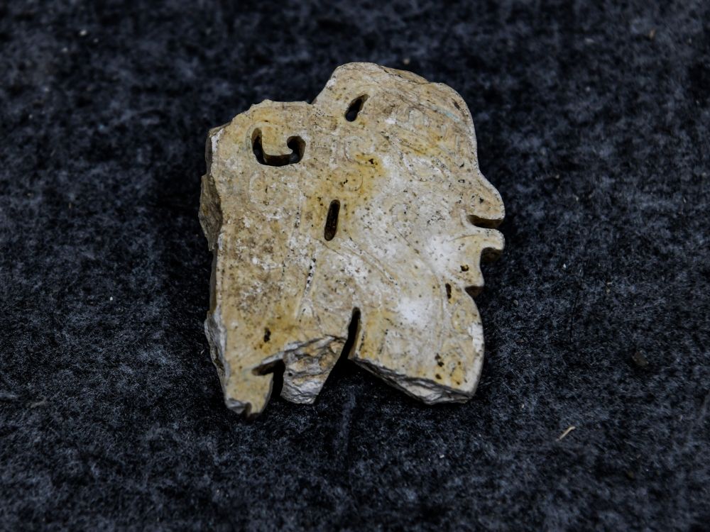 2023年12月5日拍攝的從四川資陽(yáng)濛溪河遺址群出土的有X形劃痕的骨器。該遺址是國(guó)際罕見(jiàn)的同時(shí)包含豐富石器、動(dòng)物與植物遺存的“全科型”遺址,入選了“2024年度全國(guó)十大考古新發(fā)現(xiàn)”。
