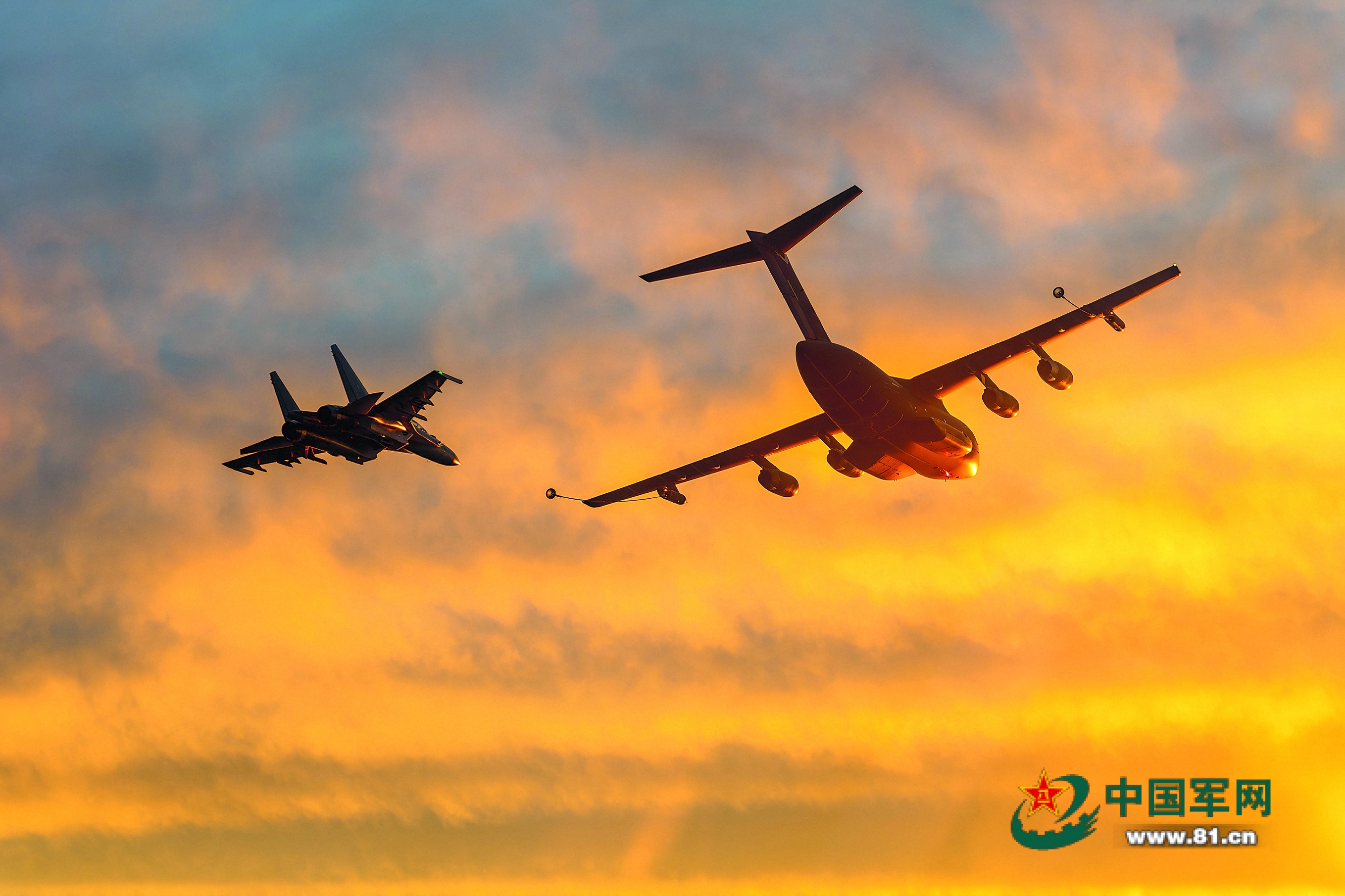 日落時(shí)分,戰(zhàn)機(jī)在夕陽映照下仿佛披上一層金色戰(zhàn)甲。編隊(duì)再次進(jìn)行空中加油,隨后展開區(qū)域封控訓(xùn)練……