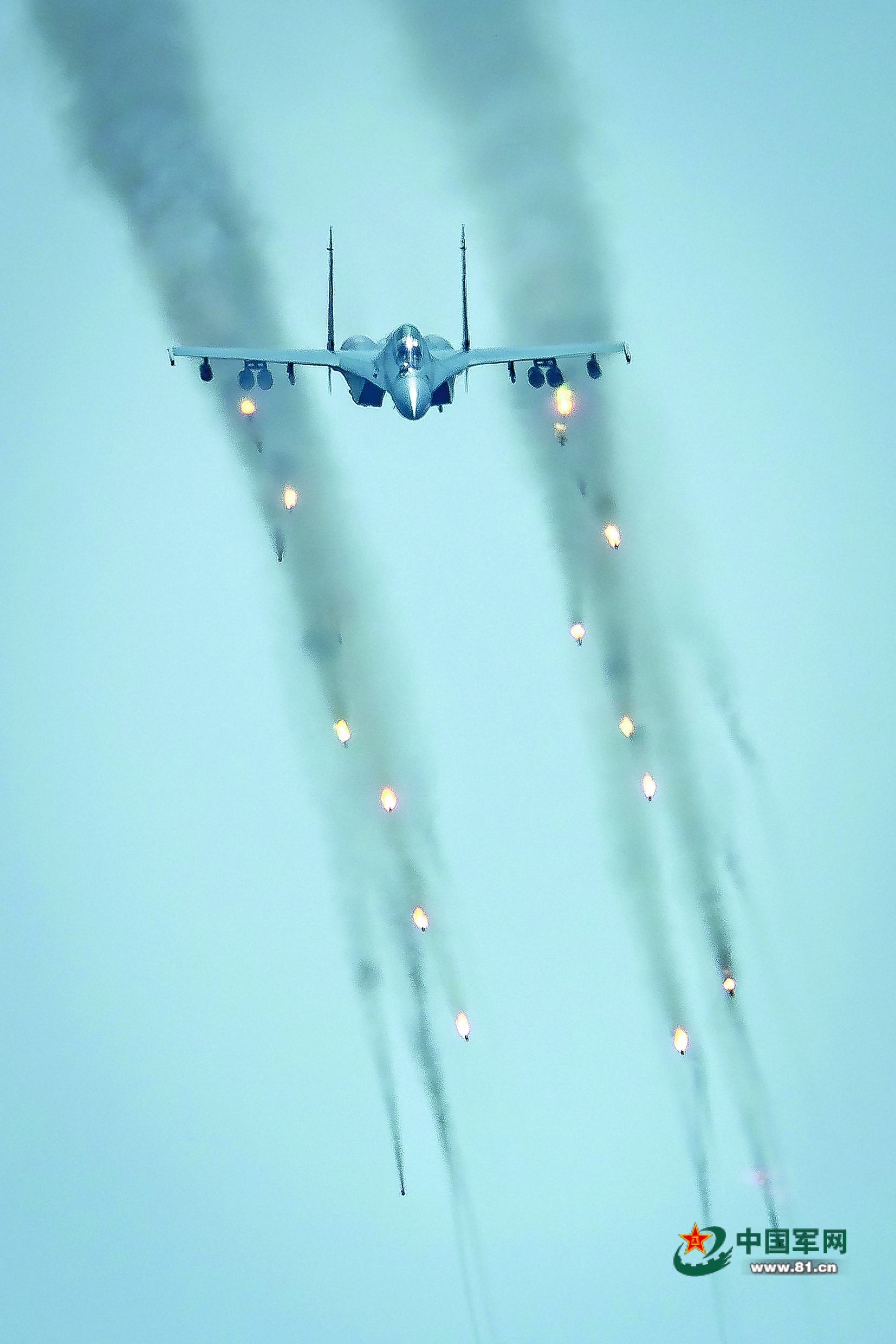 完成加油后,編隊(duì)再次前出。此時(shí),擔(dān)負(fù)對地打擊任務(wù)的戰(zhàn)機(jī),對“敵”重要目標(biāo)實(shí)施火力覆蓋,為地面進(jìn)攻力量提供空中支援。
