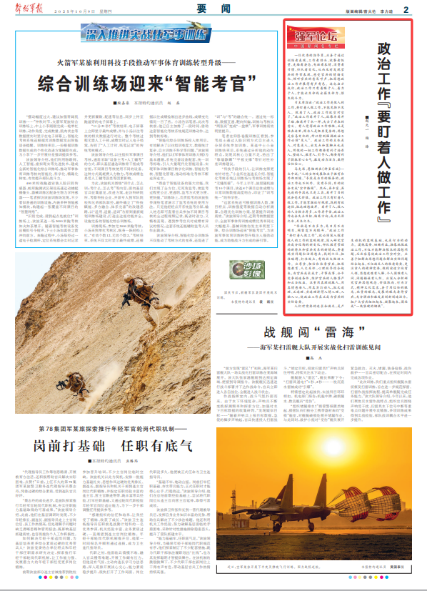 一位優(yōu)秀的指導(dǎo)員,應(yīng)善于通過(guò)訓(xùn)練看表現(xiàn)、工作看勁頭、就餐看飯量、走路看姿態(tài)、電話看表情、消費(fèi)看習(xí)慣、歸隊(duì)看變化,從而及時(shí)發(fā)現(xiàn)官兵的異常表現(xiàn)、感受官兵的情緒變化、傾聽(tīng)官兵的意見(jiàn)呼聲,把思想政治工作開(kāi)展得有聲有色。這也啟示我們,政治工作只有著眼于人、著力于人,才能讓生命線永葆生命力、催生戰(zhàn)斗力。