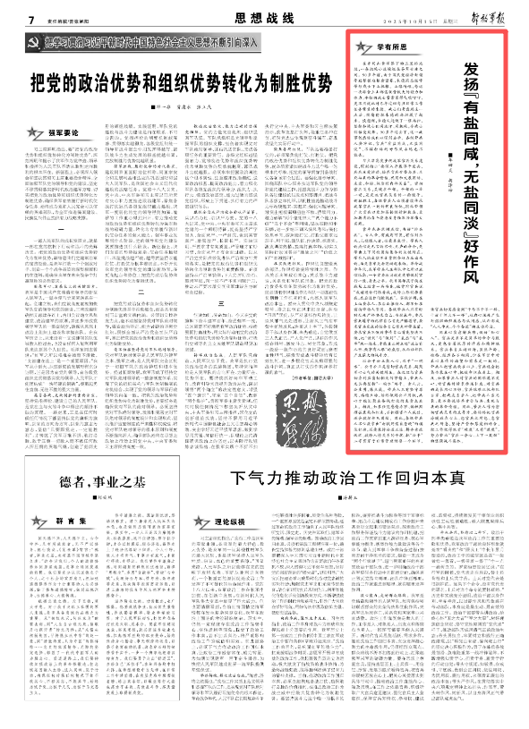發(fā)揚“有鹽同咸,無鹽同淡”好作風