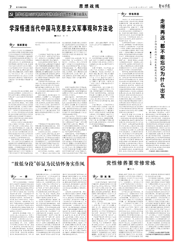 在小事小節(jié)中涵養(yǎng)黨性。“不矜細行,終累大德。”小事小節(jié)中有黨性、有原則、有人格。那些因違紀違法被查處的黨員干部,幾乎都存在一個從量變到質(zhì)變、由小節(jié)失守到最終釀成大錯的過程。特別是對于年輕干部來說,更應(yīng)扣好從政的“第一??圩印?,從一開始就嚴格自律,管好自己的生活圈、交往圈、娛樂圈,在小事小節(jié)上加強修養(yǎng)、約束言行,不以“一次不要緊”自我開脫、不以“小事無所謂”自我麻痹,特別是在私底下、無人時,更須時時處處嚴于律己,始終守住底線、穩(wěn)住心神、筑牢防線。要學(xué)深悟透黨章黨規(guī)黨紀,在學(xué)紀知紀明紀中嚴格守紀、明確標尺,以此檢視自身言行,加強黨性錘煉。經(jīng)常跟自己“打官司”,將“吾日三省吾身”作為提升個人修養(yǎng)的重要途徑,涵養(yǎng)“不檢束,則心日恣肆”的自省意識,保持“君子檢身,常若有過”的自警狀態(tài),在日常工作、生活中始終做到慎獨慎微,做一個一心為公、一身正氣、一塵不染的人。管住自己的同時,還要嚴格要求配偶子女和身邊工作人員,堅決摒棄特權(quán)思想、抵制特權(quán)現(xiàn)象,努力做家風(fēng)建設(shè)的表率,以良好家風(fēng)涵養(yǎng)清朗的黨風(fēng)政風(fēng)。