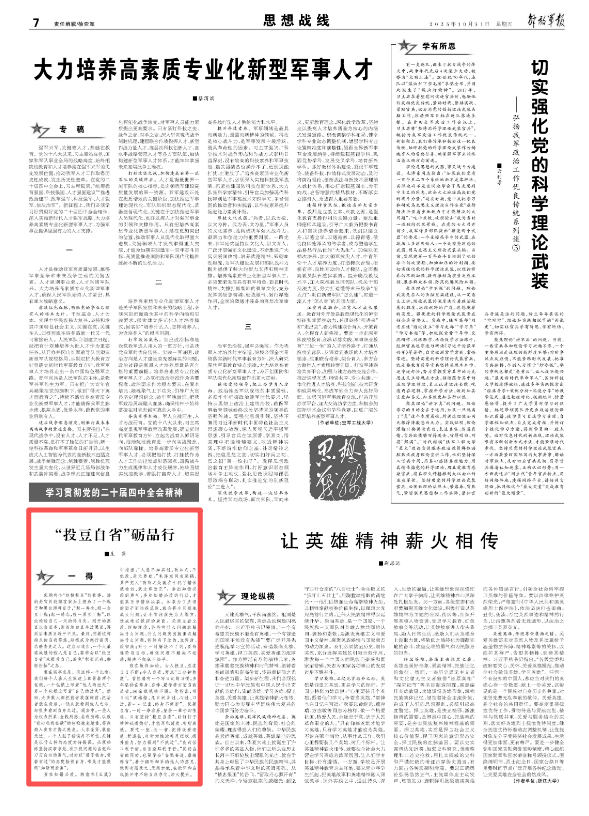 難在敬終如始。古人投豆,勝在日日不斷;今人自省,?;肌叭昼姛岫取?。曾國(guó)藩有一個(gè)寫日記的習(xí)慣,多年堅(jiān)持在修身、自律、勤學(xué)等方面自我反省,30余載筆耕不輟。他指出,寫日記“須端楷,凡日間身過(guò)、心過(guò)、口過(guò),皆一一記出,終身不間斷”。反躬自省,一時(shí)一事容易,堅(jiān)持一輩子卻很難。只有堅(jiān)持“投豆自省”,以釘釘子精神砥礪德行,才能厚積薄發(fā)、有所成就。要吃一塹、長(zhǎng)一智,把錯(cuò)誤看清楚、析透徹,有針對(duì)性地補(bǔ)足短板、提升能力,努力做到“不貳過(guò)”。“良藥苦口利于病,忠言逆耳利于行。”反躬自省的同時(shí),也要學(xué)會(huì)“咨諏善道,察納雅言”,善于傾聽(tīng)和采納他人的意見(jiàn),做到有則改之、無(wú)則加勉,在批評(píng)和自我批評(píng)中不斷自我凈化、淬火提升。