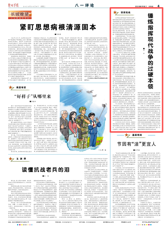 西部戰(zhàn)區(qū)某部通過“任務(wù)式指揮”,錘煉各級(jí)指揮員在復(fù)雜戰(zhàn)場環(huán)境下的自主決策能力;海軍某基地復(fù)盤近年來海上維權(quán)斗爭,重點(diǎn)查找指揮短板;火箭軍某部對(duì)各級(jí)指揮員掌握新技術(shù)新裝備情況專項(xiàng)評(píng)估,倒逼大家把擁有科技頭腦作為指揮能力的剛需……沙場秋點(diǎn)兵,鏖戰(zhàn)中軍帳。連日來,全軍各部隊(duì)在演訓(xùn)中練指揮、研指揮、強(qiáng)指揮,進(jìn)一步錘煉指揮現(xiàn)代戰(zhàn)爭的過硬本領(lǐng)。