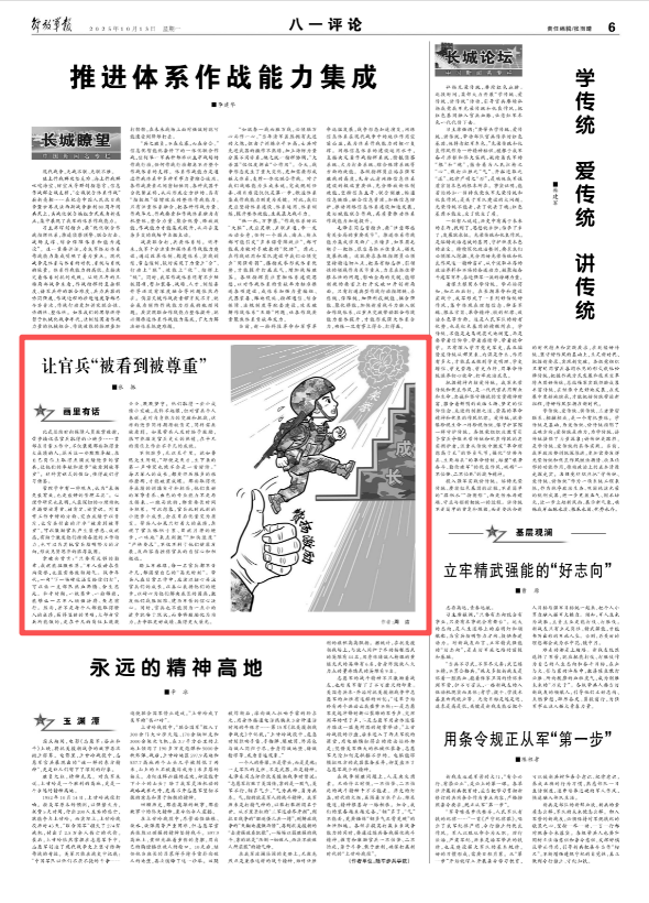 踏上軍旅路,每一名官兵都不甘平凡,都渴望自己的“高光時刻”。帶兵人在日常工作中,應該以細心關注官兵們的成長,以真心表揚他們的進步,以耐心為他們解決成長的困惑,激發(fā)他們戰(zhàn)勝困難、建功軍營的信心決心。同時,官兵也不能因為一點小的進步就安于現(xiàn)狀,而要將鼓勵化為動力,去爭取更好成績、贏得更大榮光。