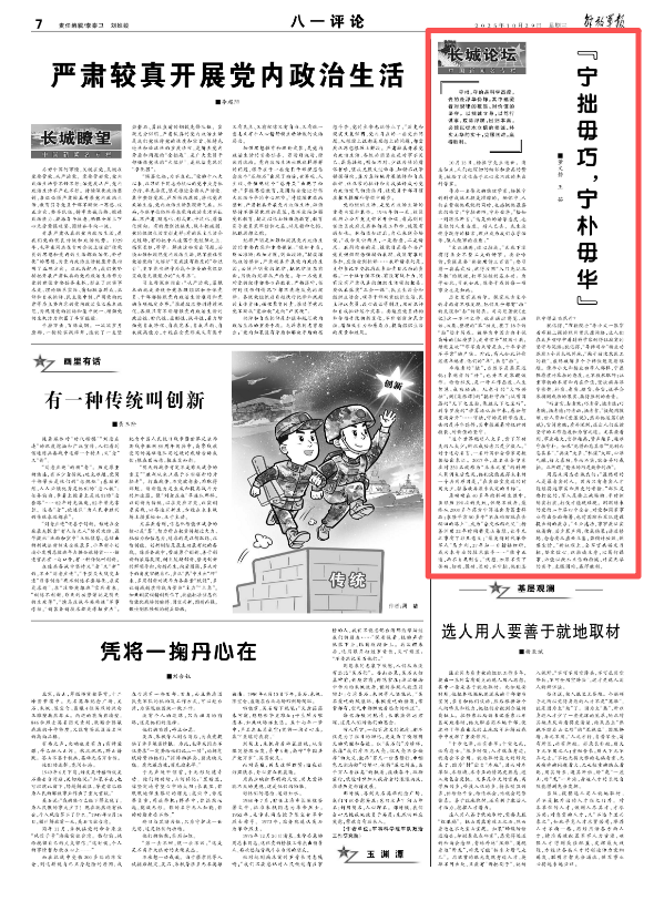 守拙,守的是科學(xué)態(tài)度,去的是浮華偽飾,其中蘊(yùn)藏著對(duì)規(guī)律的敬畏、對(duì)價(jià)值的堅(jiān)守。以拙誠(chéng)立身,以篤行謀事,戒除浮躁,回歸本真,必能以徙木立信的拙誠(chéng)、樸實(shí)無(wú)華的實(shí)干,克服困難,贏得勝利。