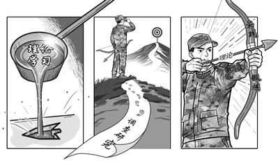 “弄到箭、看清靶、射得準(zhǔn)”,體現(xiàn)了“由學(xué)到用到會(huì)用”的實(shí)踐過程。這深刻地啟示我們,具體工作中,只有把3個(gè)步驟全面系統(tǒng)地聯(lián)系起來,認(rèn)真加以運(yùn)用,才能做到“有的放矢”,推動(dòng)各項(xiàng)事業(yè)高質(zhì)量發(fā)展。對(duì)軍人而言,實(shí)現(xiàn)能打仗、打勝仗的目標(biāo),就要掌握作戰(zhàn)理論,洞悉現(xiàn)代戰(zhàn)爭(zhēng)制勝機(jī)理,不斷研究訓(xùn)法戰(zhàn)法,積極投身實(shí)戰(zhàn)化訓(xùn)練磨礪自己,真正成為未來戰(zhàn)爭(zhēng)的行家里手,確保一旦有事能夠上得去、打得贏。