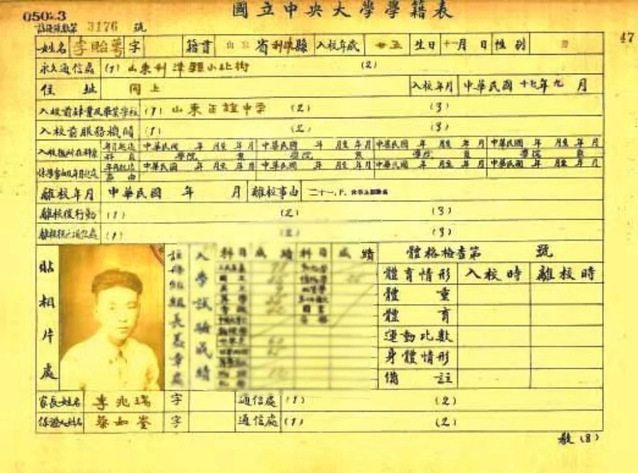 ▲李竹如(原名李貽萼)中央大學(xué)學(xué)籍表?!。▓D源:南京大學(xué)檔案館)