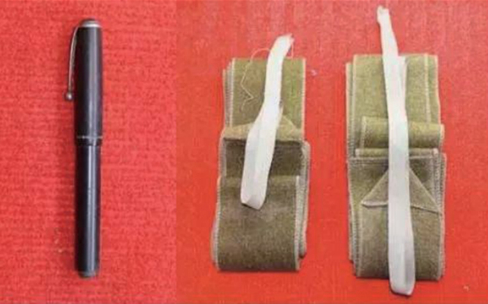 ▲抗戰(zhàn)時期,劉暖烈士使用的鋼筆和裹腿。