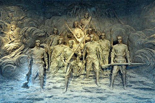 肅立在“馬石山十勇士”雕像前,我的內(nèi)心充滿崇敬與悲壯。經(jīng)歷血與火的考驗(yàn),膠東抗日根據(jù)地的軍民魚水情更深?;⒖谔由陌傩?,含淚把烈士的遺骨埋進(jìn)自家祖墳,還有很多人自發(fā)加入反“掃蕩”斗爭(zhēng)中。