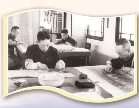 ▲新中國(guó)成立后,工作人員修補(bǔ)《趙城金藏》。
