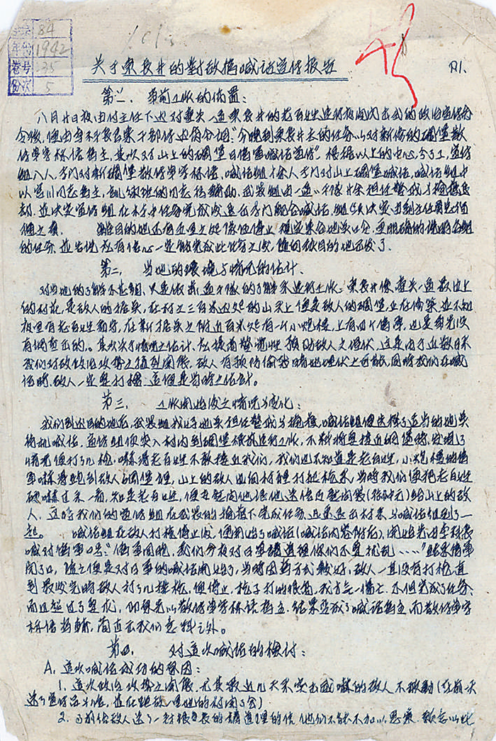 ▲《關(guān)于東長井的對敵偽喊話宣傳報告》首頁。