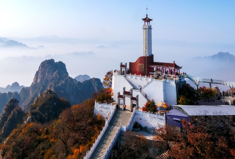 ▲這是狼牙山棋盤陀峰頂?shù)摹袄茄郎轿逵率考o(jì)念塔”(2017年10月27日攝,無人機(jī)照片)?!?span tag="ueditor-text-tushuo" class="imgdesc" style="text-indent: 2em; ">新華社發(fā)