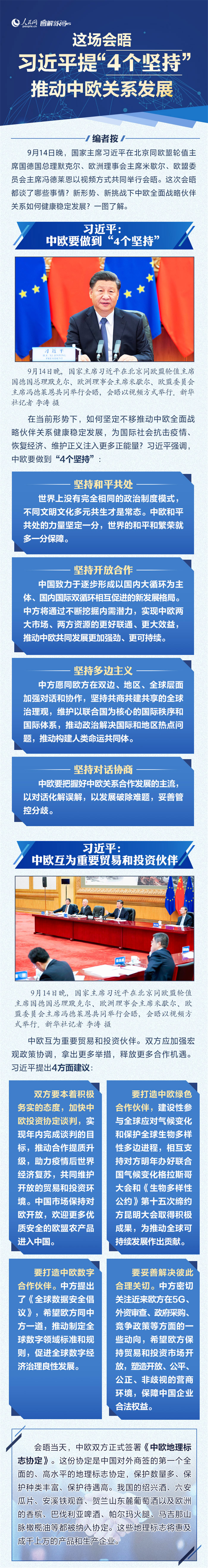 這場(chǎng)會(huì)晤 習(xí)近平提“4個(gè)堅(jiān)持”推動(dòng)中歐關(guān)系發(fā)展