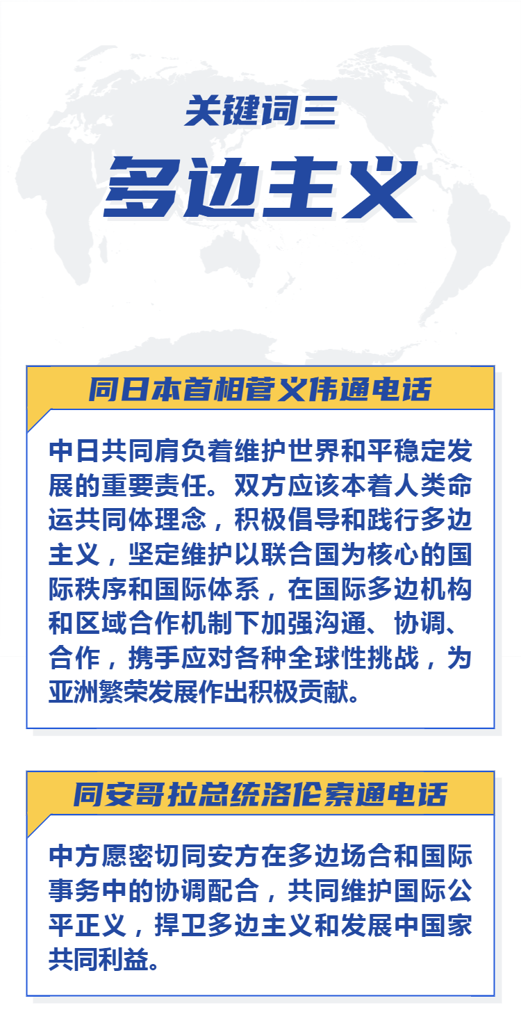 兩次通話,內(nèi)容豐富?!暗谝粓?bào)道”為您梳理出3個(gè)關(guān)鍵詞——