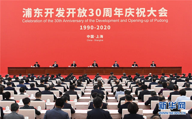 11月12日,浦東開發(fā)開放30周年慶祝大會(huì)在上海市舉行。中共中央總書記、國家主席、中央軍委主席習(xí)近平在會(huì)上發(fā)表重要講話。新華社記者 申宏 攝