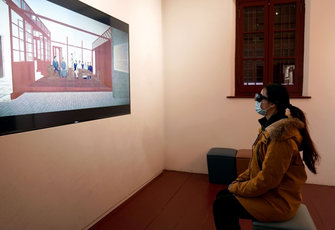1月18日,參觀者通過VR設(shè)備了解進(jìn)步青年們在舊址內(nèi)活動情況。新華社記者 劉穎 攝
