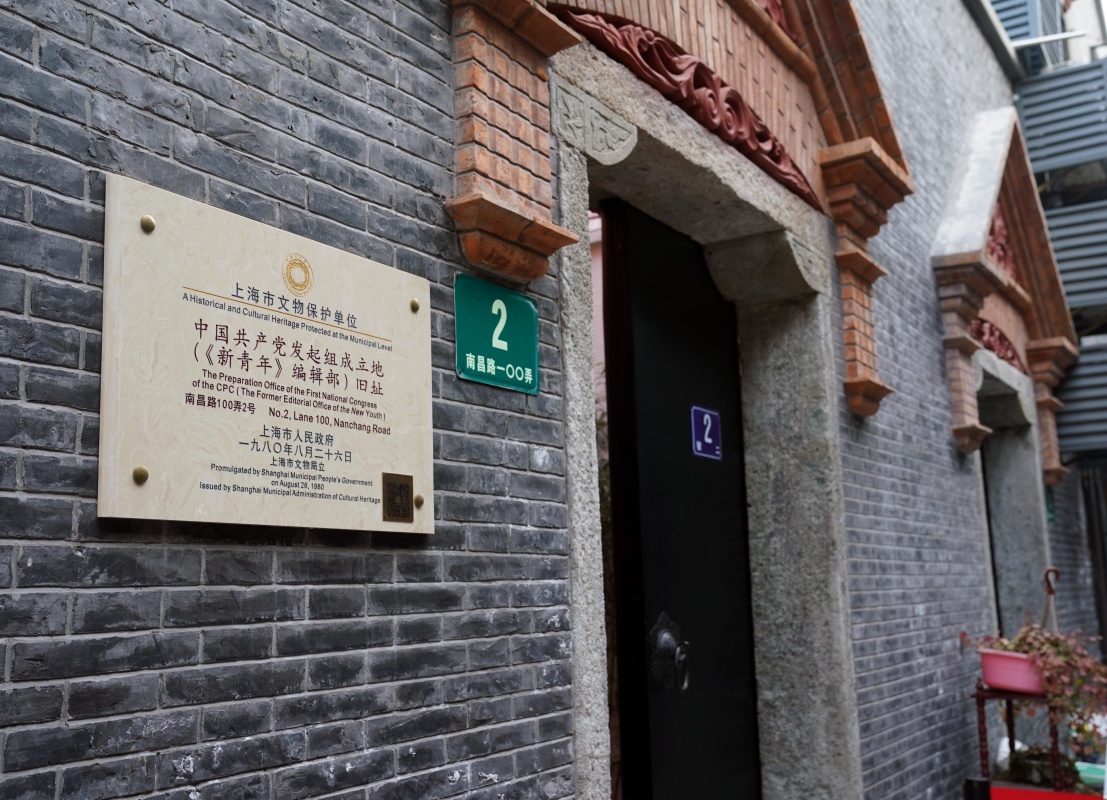 距離中共一大會址大約1公里的地方,就是上海市黃浦區(qū)南昌路100弄2號,墻上銘牌顯示“中國共產(chǎn)黨發(fā)起組成立地”和“《新青年》編輯部舊址”。這里記載著諸多跨越百年的紅色記憶,如今,經(jīng)常有很多人來參觀這棟石庫門建筑。