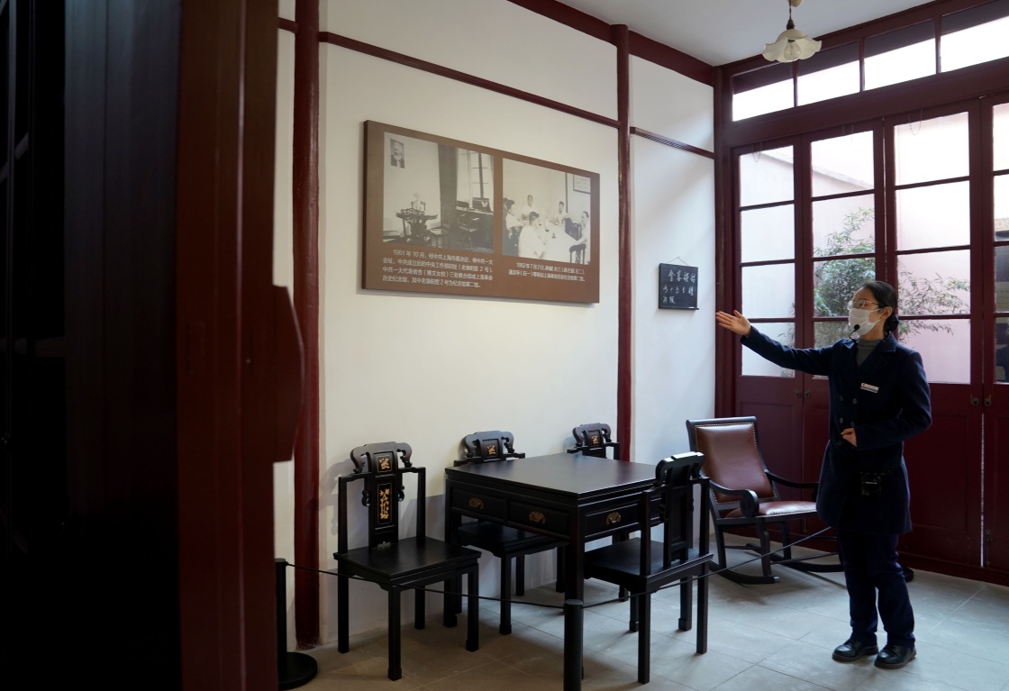 1月18日,在“中國共產(chǎn)黨發(fā)起組成立地”和“《新青年》編輯部舊址”內(nèi),講解員在講解。新華社記者 劉穎 攝