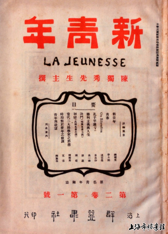 這是1916年9月1日出版的《新青年》雜志封面。新華社發(fā)(上海市檔案館供圖)