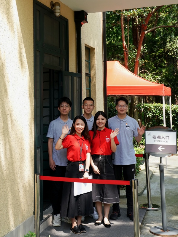 在復(fù)旦大學(xué)《共產(chǎn)黨宣言》展示館,一支名為“星火”的黨員志愿服務(wù)隊(duì)部分隊(duì)員在館前合影(2020年6月30日攝)。新華社記者 劉穎 攝