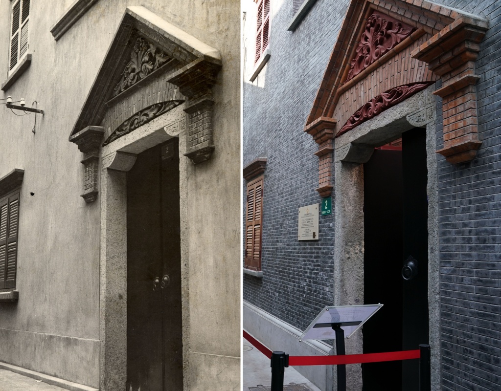 拼版照片:左圖是法租界老漁陽里2號的歷史照片(上海市檔案館供圖);右圖是1月18日拍攝的南昌路100弄2號(新華社記者劉穎攝)。新華社發(fā)