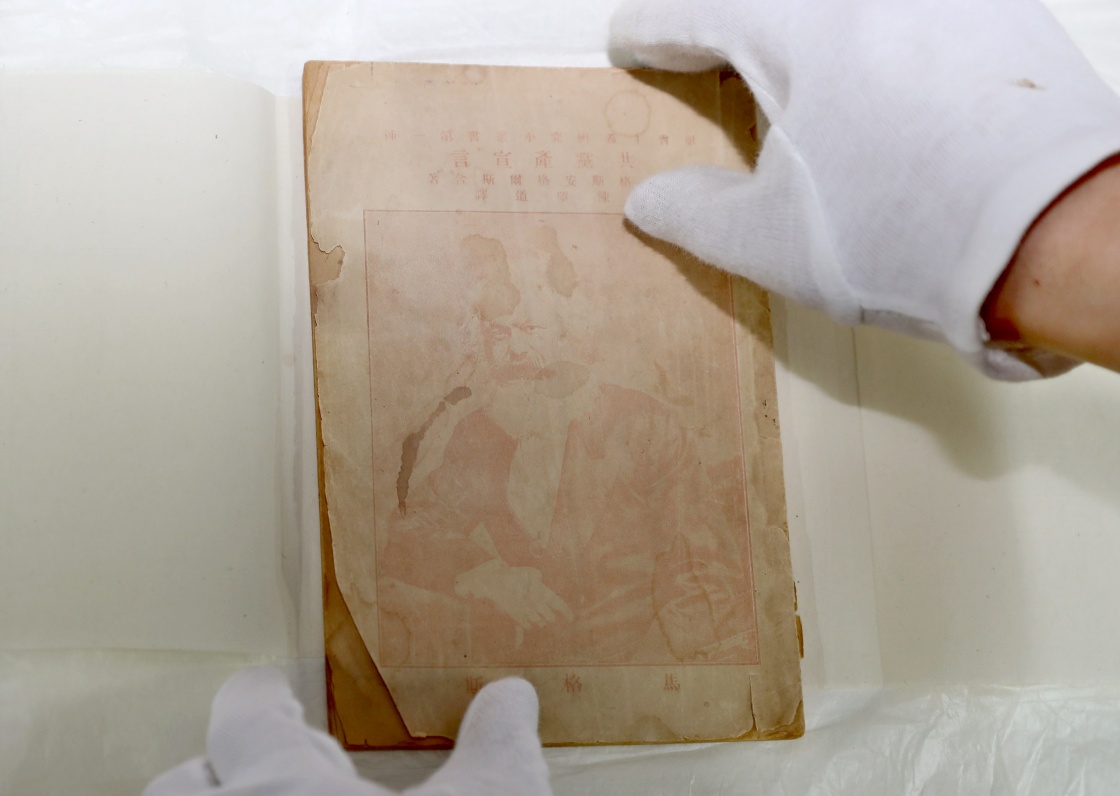 在老漁陽里2號,陳獨(dú)秀校對了陳望道翻譯的《共產(chǎn)黨宣言》首個中文全譯本。1920年8月,這本影響中國歷史的小冊子正式出版?!坝幸粋€怪物,在歐洲徘徊著,這怪物就是共產(chǎn)主義……”一百多年來,小冊子中的真理養(yǎng)分滋養(yǎng)著中國大地,不斷結(jié)出甘甜果實(shí)。目前,首版紅色封面的《共產(chǎn)黨宣言》在全國僅發(fā)現(xiàn)12本,上海存有5本。