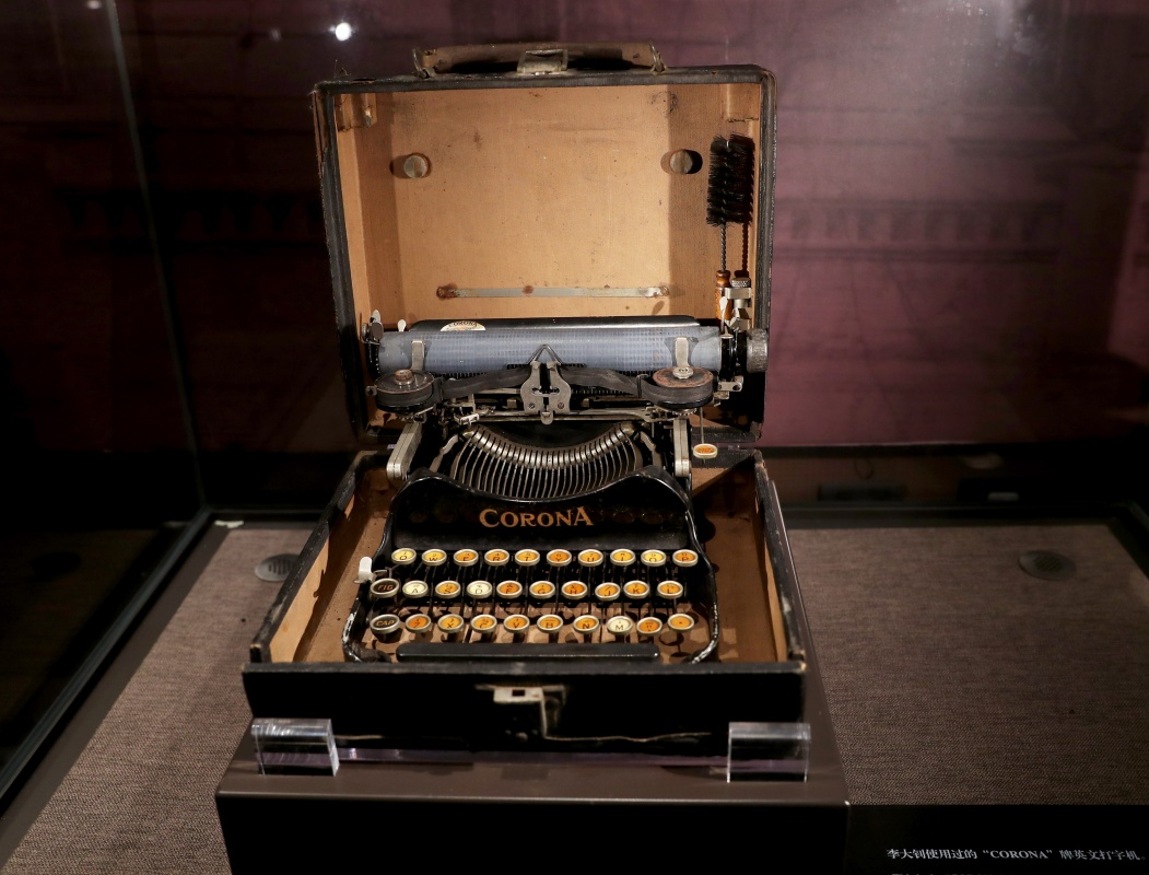 這是中共一大會(huì)址紀(jì)念館內(nèi)展示的李大釗用過(guò)的打字機(jī)(2020年11月13日攝)。新華社記者 劉穎 攝