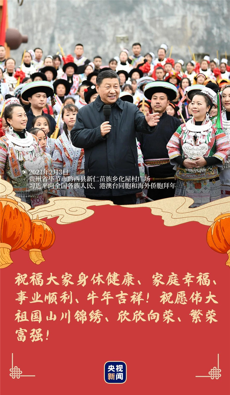 牛年春節(jié)到來(lái)之際,習(xí)近平總書(shū)記來(lái)到貴州,看望慰問(wèn)各族干部群眾,向全國(guó)各族人民、向港澳臺(tái)同胞和海外僑胞致以美好的新春祝?!?/p>