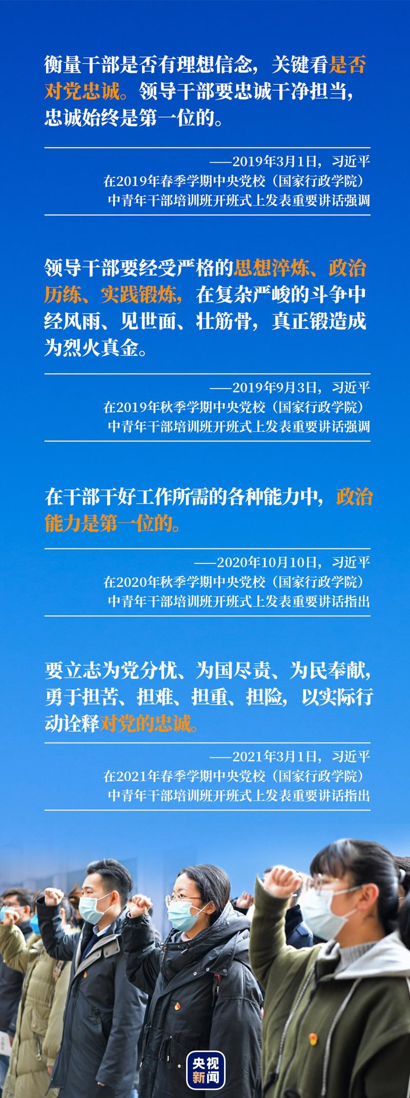 對黨忠誠、提高政治能力是總書記在近幾年中青年干部培訓班開班式上授課的關(guān)鍵詞。