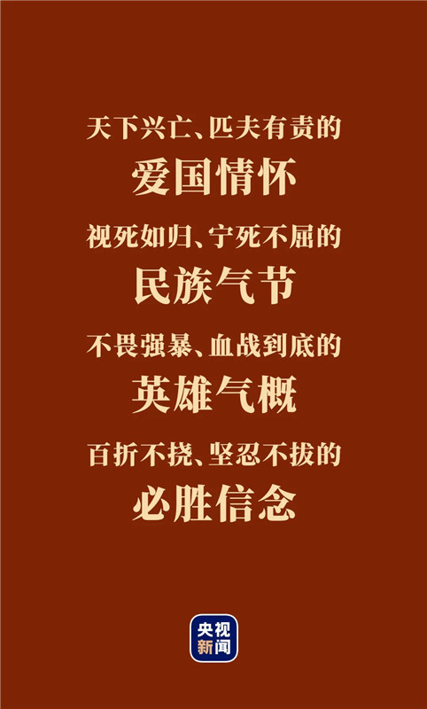 鑒往事,知來(lái)者。繼承和弘揚(yáng)偉大抗戰(zhàn)精神,以越是艱險(xiǎn)越向前的大無(wú)畏氣概,奮勇搏擊、迎難而上、勇于斗爭(zhēng),我們必將在戰(zhàn)勝各種風(fēng)險(xiǎn)挑戰(zhàn)中書寫中華民族偉大復(fù)興的新篇章。