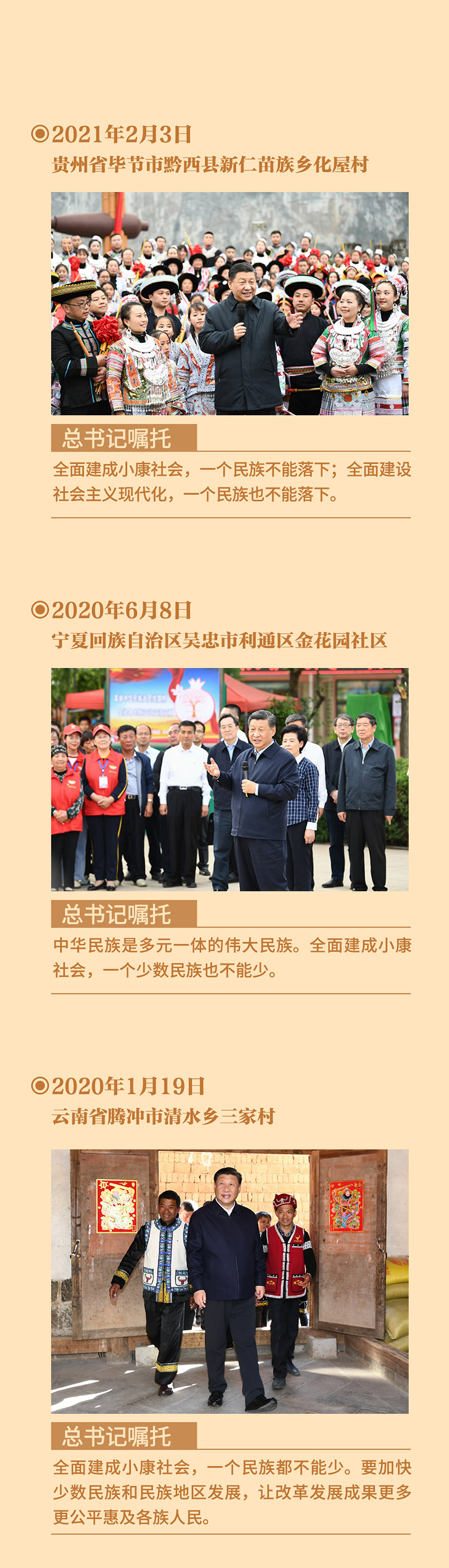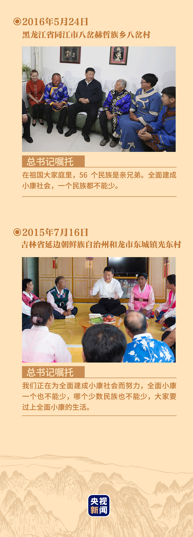黨的十八大以來,習(xí)近平總書記始終牽掛民族地區(qū)的發(fā)展。他多次考察少數(shù)民族地區(qū),強(qiáng)調(diào)全面建成小康社會,一個(gè)民族都不能少。