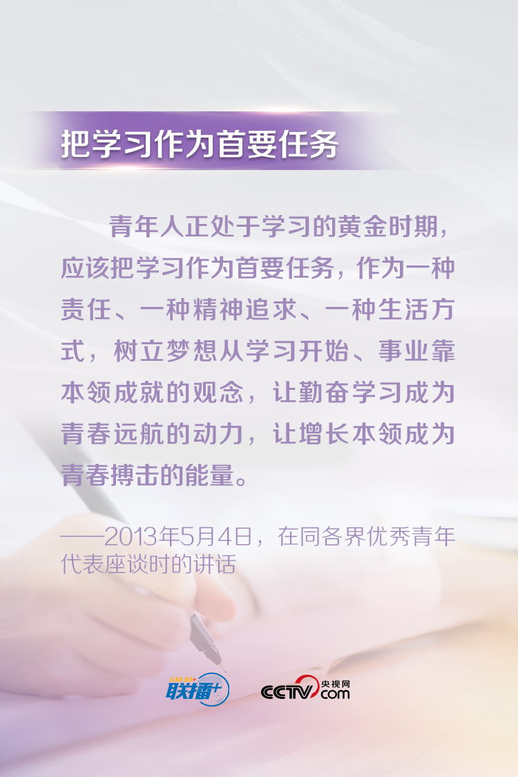 習(xí)近平總書記一直以來都十分關(guān)心青年成長成才,常常走近青年、傾聽青年、鼓勵青年。他說,“青年最富有朝氣、最富有夢想”,“中華民族偉大復(fù)興終將在廣大青年的接力奮斗中變?yōu)楝F(xiàn)實”。央視網(wǎng)《聯(lián)播+》特梳理總書記對廣大青年的寄語,與您一起學(xué)習(xí)。