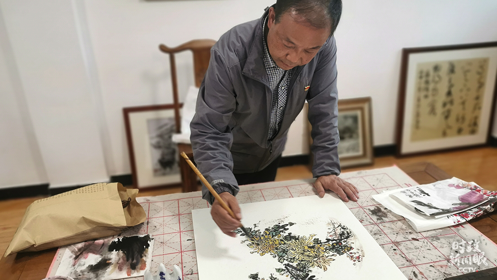 △55歲的魏真盈是社區(qū)書畫室的國(guó)畫指導(dǎo)老師。(總臺(tái)央視記者覃思、馬超拍攝)