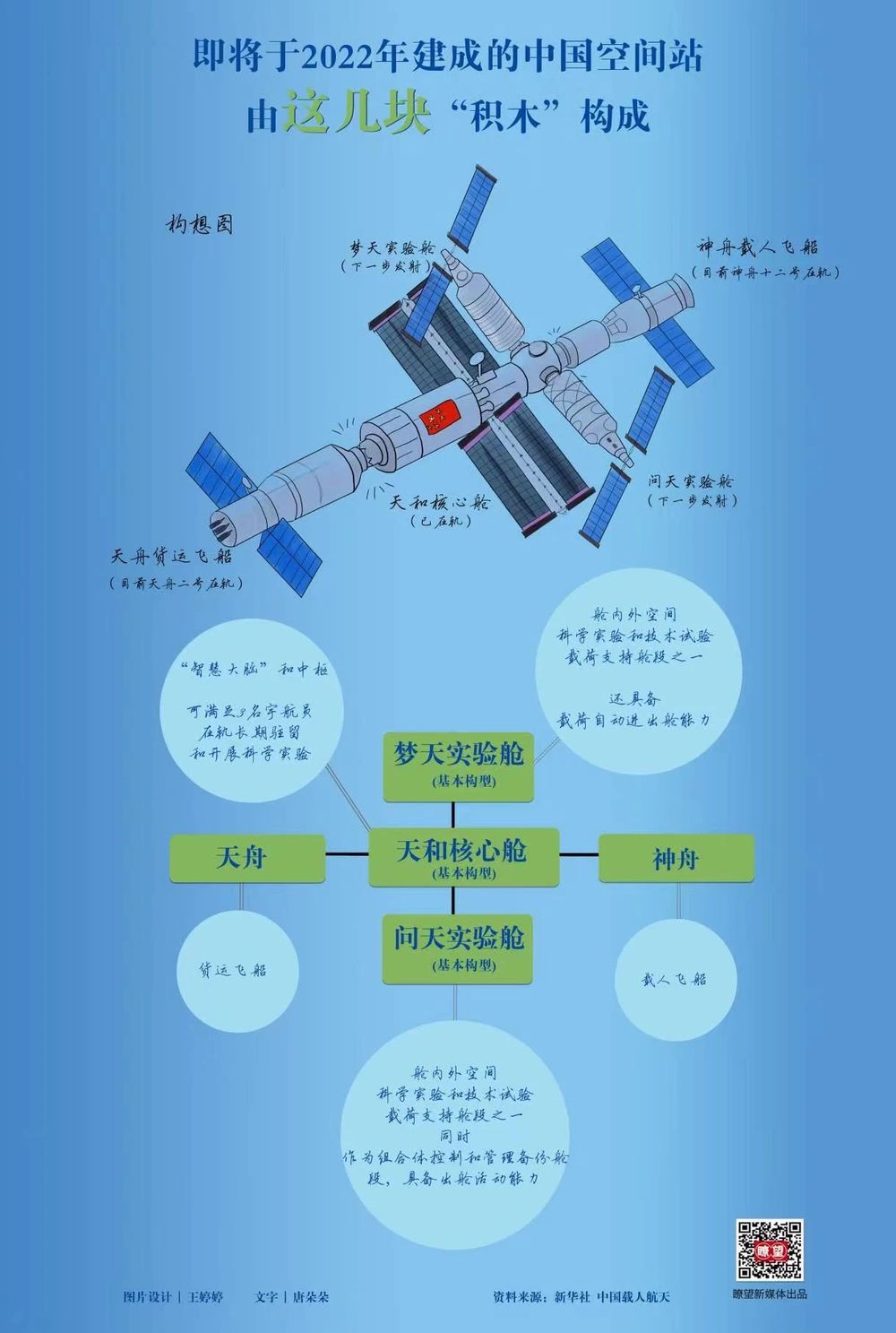▲ 這幾天大家觀測(cè)的中國(guó)空間站是這樣構(gòu)成的(瞭望新媒體出品,繪圖制作 | 王婷婷;創(chuàng)意統(tǒng)籌 | 唐朵朵)