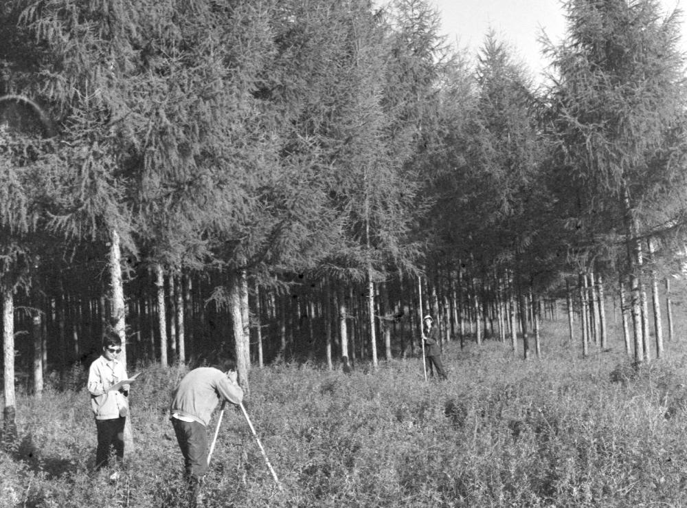 ↑林業(yè)調(diào)查隊員在塞罕壩林場進(jìn)行森林調(diào)查(20世紀(jì)80年代資料照片)。