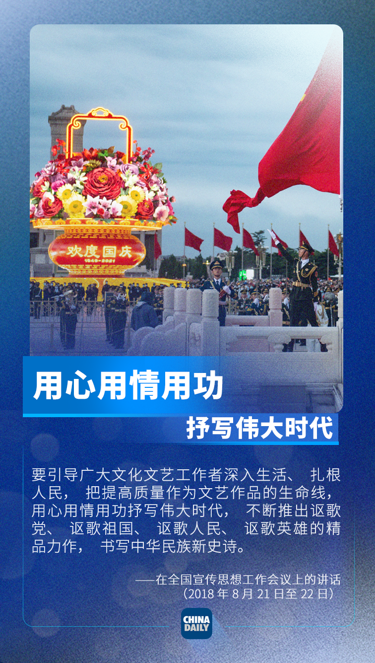 2014年10月15日,習(xí)近平總書記主持召開文藝工作座談會(huì)強(qiáng)調(diào),堅(jiān)持以人民為中心的創(chuàng)作導(dǎo)向,創(chuàng)作更多無(wú)愧于時(shí)代的優(yōu)秀作品。關(guān)于文藝工作,習(xí)近平總書記有哪些重要論述?中國(guó)日?qǐng)?bào)網(wǎng)帶你一起學(xué)習(xí)。