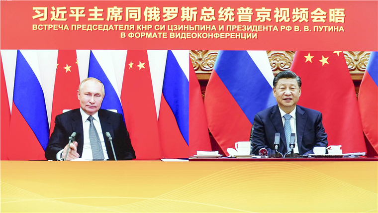 這一年,習(xí)近平主席與普京總統(tǒng)舉行視頻會(huì)晤、通電話,多次共致賀信、共同出席一系列多邊視頻峰會(huì)。在元首外交引領(lǐng)下,中俄新時(shí)代全面戰(zhàn)略協(xié)作伙伴關(guān)系不斷向前邁進(jìn),雙方在多領(lǐng)域合作持續(xù)發(fā)力,不斷取得新成果。