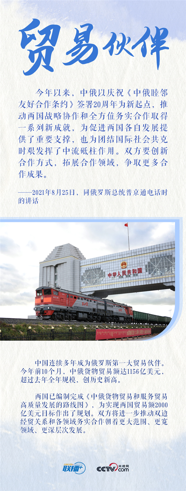 值此中俄“背靠背”戰(zhàn)略協(xié)作和全方位務(wù)實(shí)合作蓬勃發(fā)展之際,央視網(wǎng)《聯(lián)播+》特梳理習(xí)近平主席關(guān)于中俄關(guān)系發(fā)展的重要論述,與您一起學(xué)習(xí)。