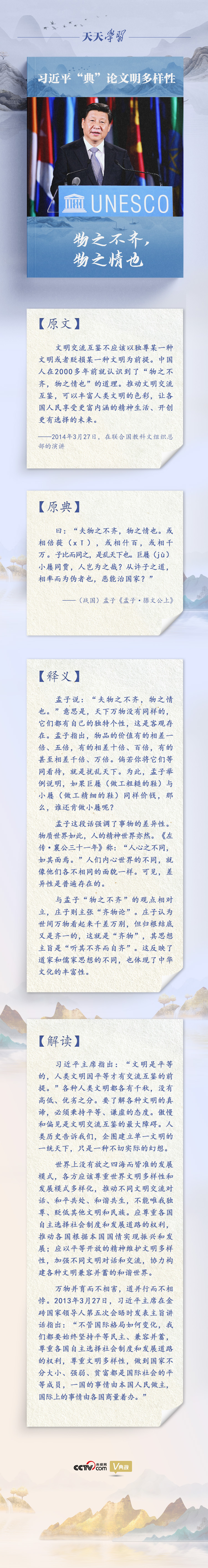 推動文明交流互鑒,需要秉持正確的態(tài)度和原則。習(xí)近平主席多次在聯(lián)合國舞臺上引用中國古代經(jīng)典名句,闡述中國對文明多樣性的主張,借古以開今,為解決人類問題貢獻(xiàn)中國智慧和方案。