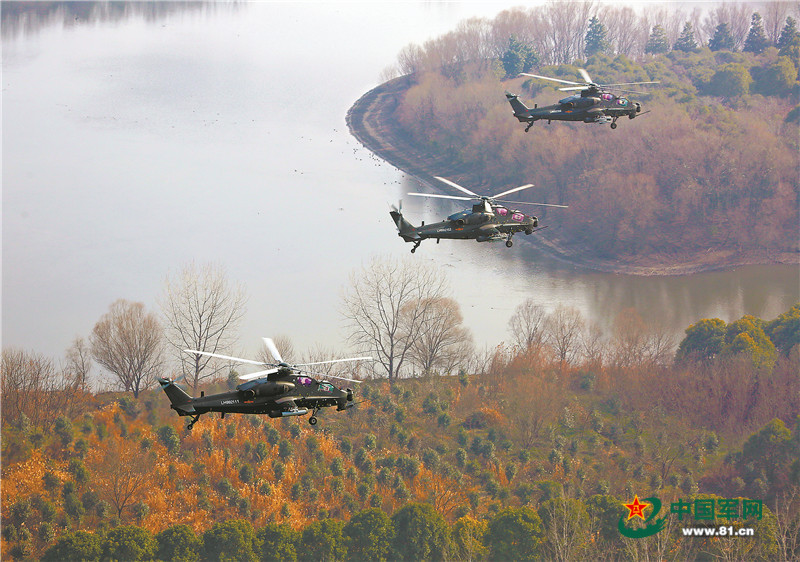 上圖:第72集團軍某陸航旅組織直升機超低空編隊飛行訓(xùn)練,錘煉部隊實戰(zhàn)能力。解放軍報特約通訊員 張歡朋攝