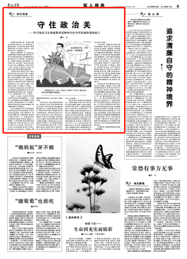 守住政治關(guān),貴在常做政治自檢?!熬咏K日乾乾,夕惕若厲,無咎。”對照政治要求檢視反思、躬身自省,既是共產(chǎn)黨人牢記初心使命的一面鏡子,也是黨員干部保持廉潔自律的有力武器。陳毅“中夜嘗自省”,張聞天不怕自己的“瘌痢頭”給人看,謝覺哉每晚與自己“打官司”……老一輩無產(chǎn)階級革命家之所以慎終如始,守住政治關(guān),一個重要方面就在于他們經(jīng)常自我反思,常做政治自檢。對于黨員干部特別是年輕干部而言,經(jīng)常自覺地進(jìn)行政治自檢,就是要看政治忠誠、政治擔(dān)當(dāng)、政治能力、政治自律等方面是否合格,做到既練打仗、又講政治,既本領(lǐng)高強、又政治過硬;就是要時刻自重自省自警自勵,慎獨慎微慎始慎終,始終做到心有所守、行有所循,做人不逾矩、辦事不妄為、用權(quán)不違規(guī),在保持干凈中健康成長,在干事?lián)?dāng)中錘煉本領(lǐng),努力成為堪當(dāng)強國強軍重任的時代新人。