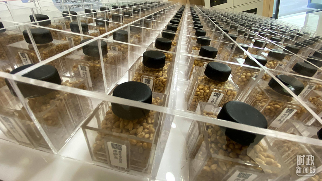 △實(shí)驗(yàn)室展出小麥、大豆、水稻等種子。(總臺(tái)央視記者郭曉龍拍攝)