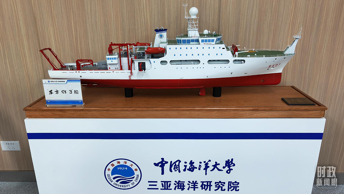 △三亞海洋研究院展示的“東方紅3”船模型。(總臺(tái)央視記者馬超拍攝)
