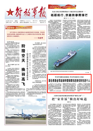 通報要求,廣大官兵要以受表彰的先進單位和先進個人為榜樣,聚焦能打仗、打勝仗,以只爭朝夕的精神狀態(tài)和更加飽滿的工作干勁,銳意進取、攻堅克難,全面提高戰(zhàn)場環(huán)境保障能力,為實現(xiàn)黨在新時代的強軍目標、把人民軍隊全面建成世界一流軍隊作出新的更大貢獻。